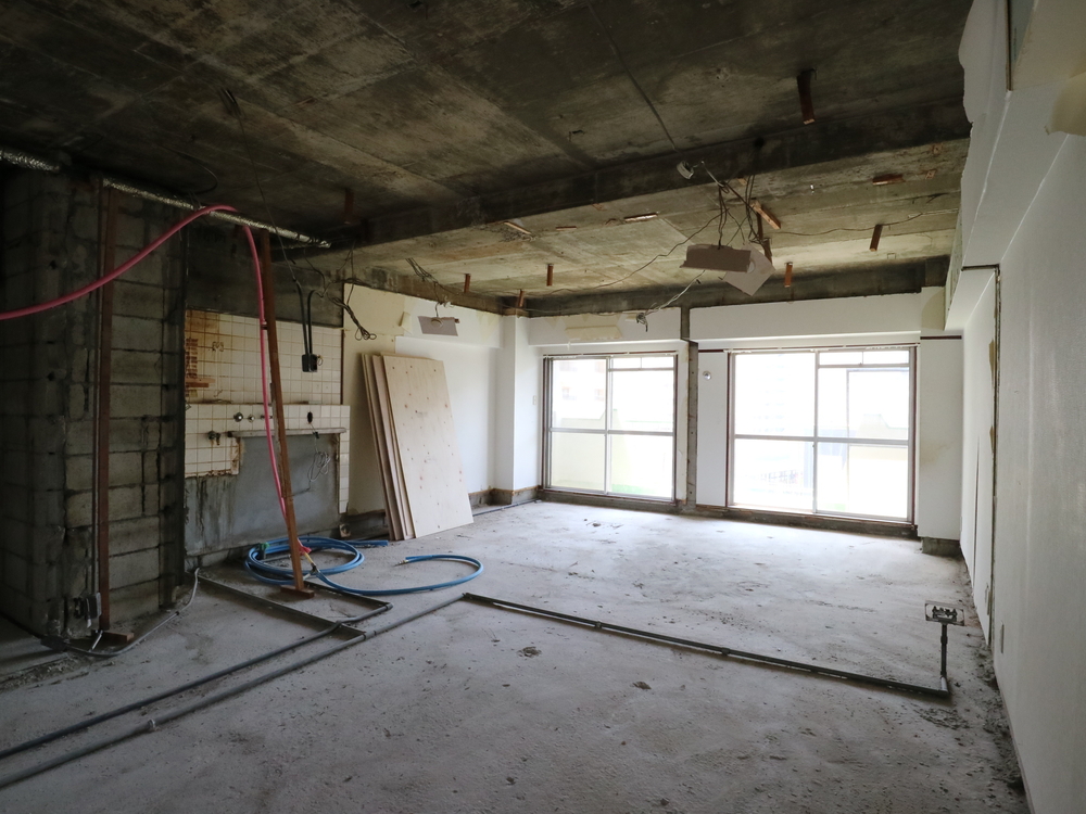 リビングの施工中