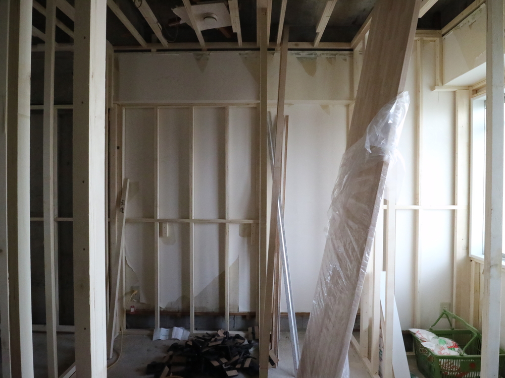 ウォークインクロゼットの施工中