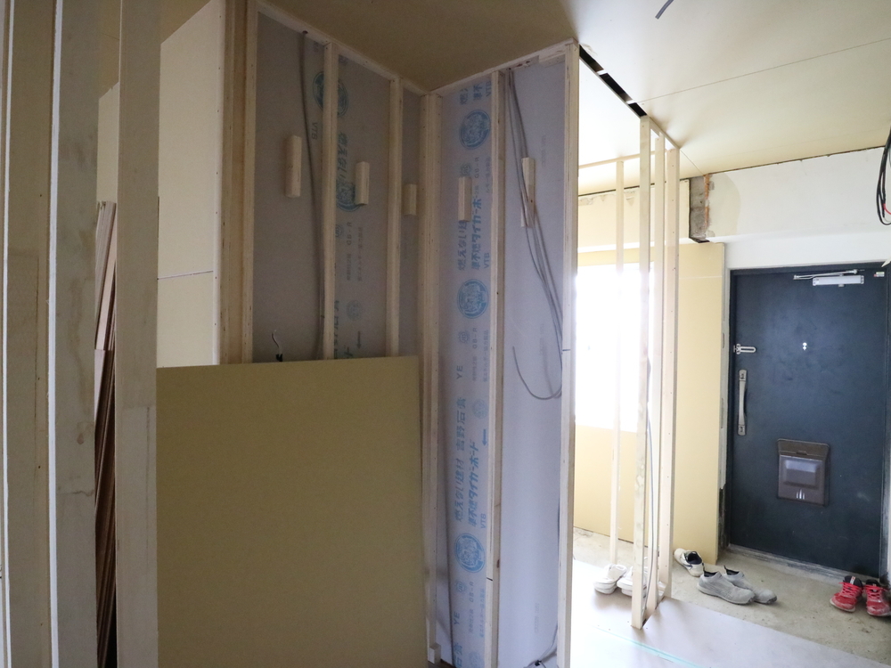 玄関の施工中