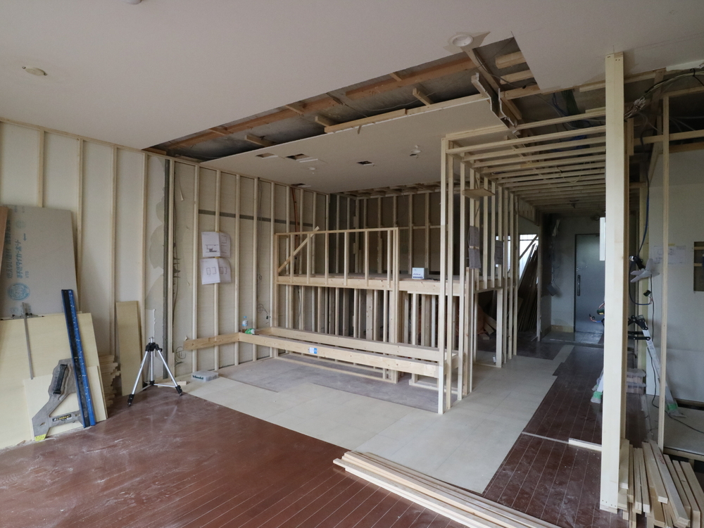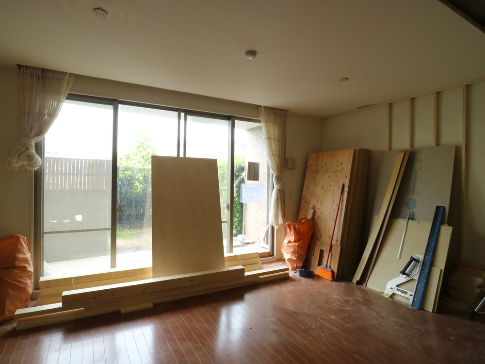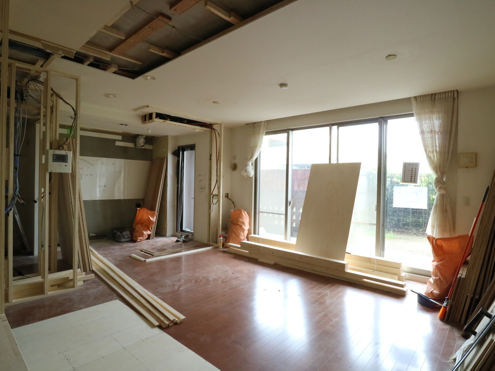 リビングの施工中