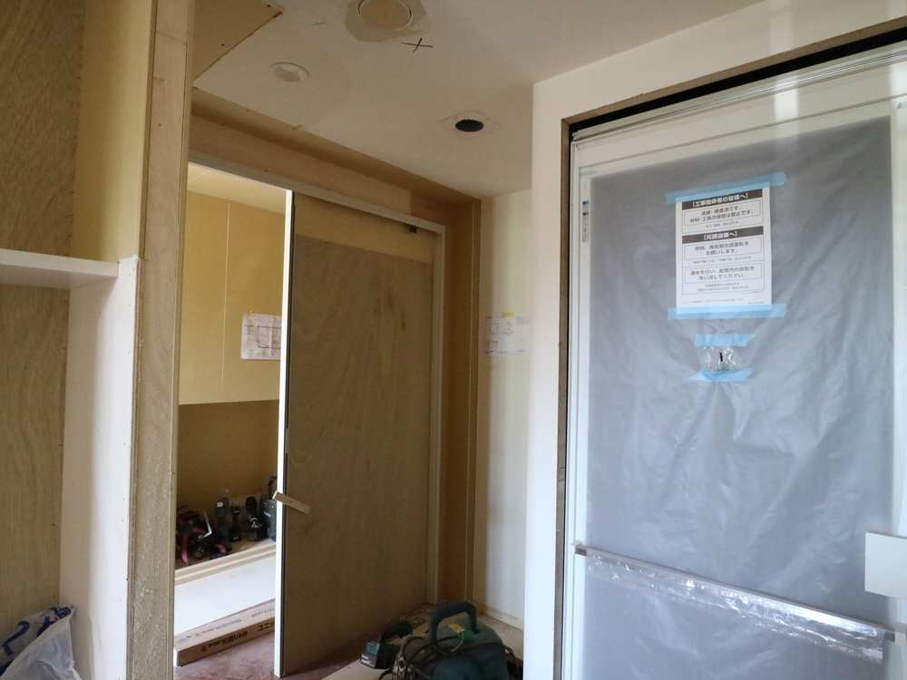 洗面室の施工中