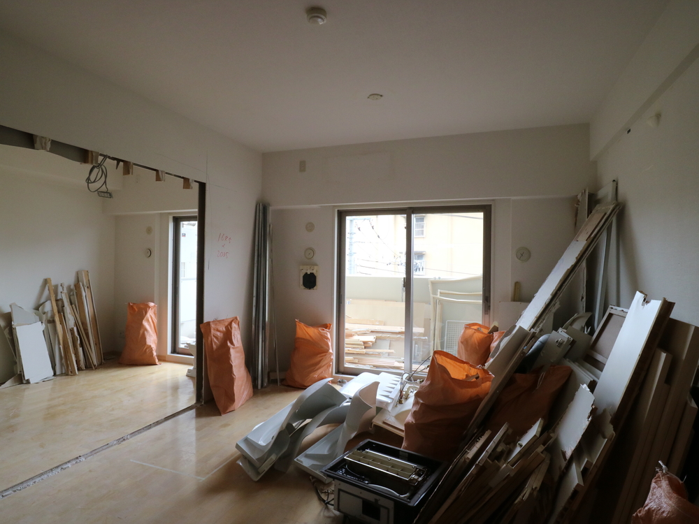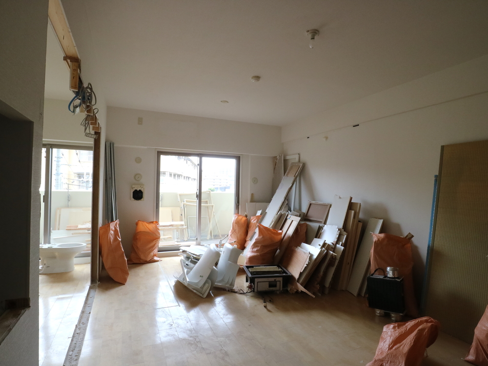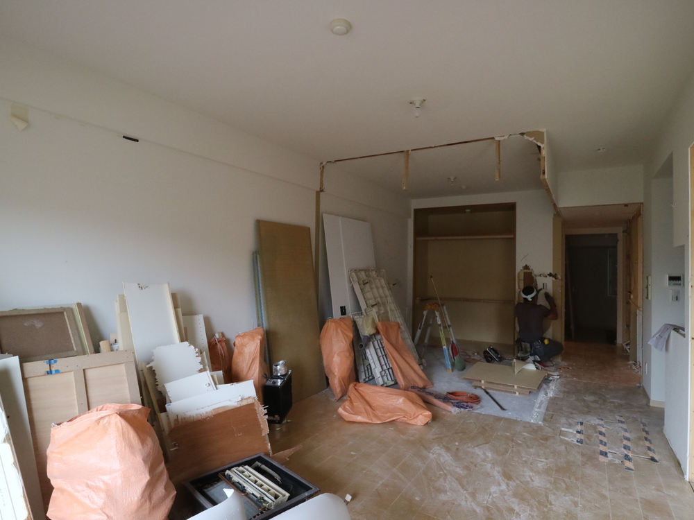 リビングの施工中