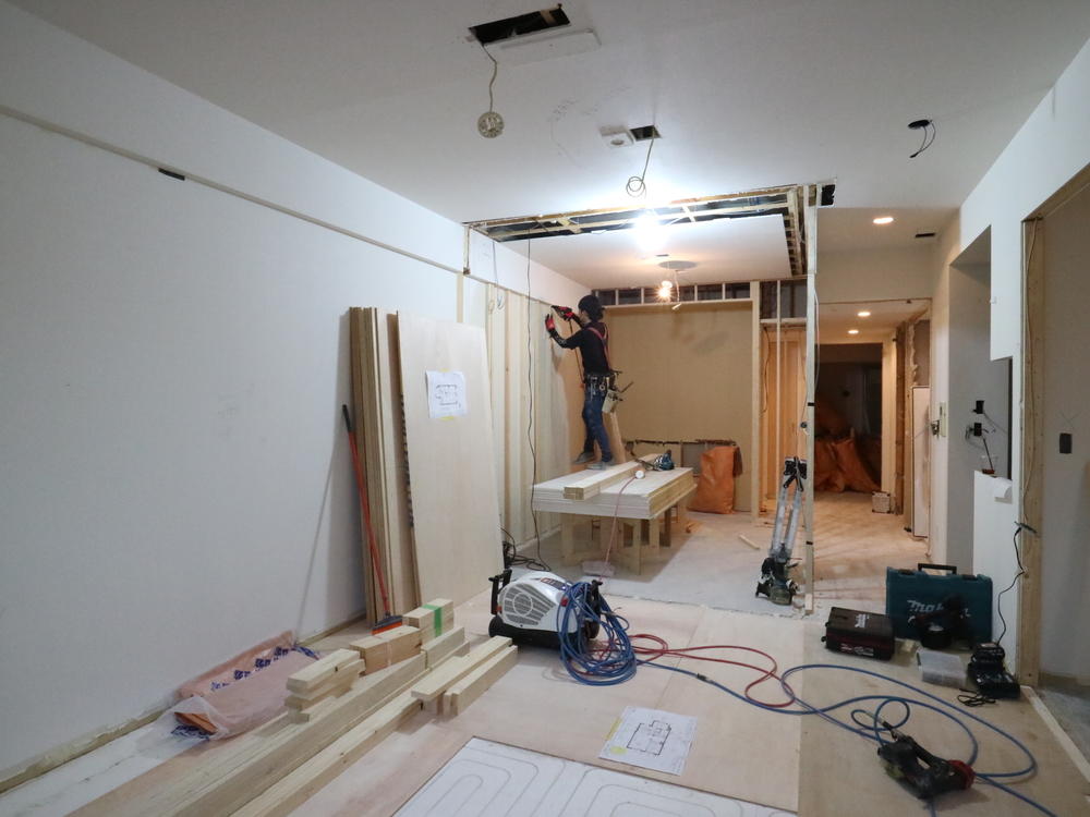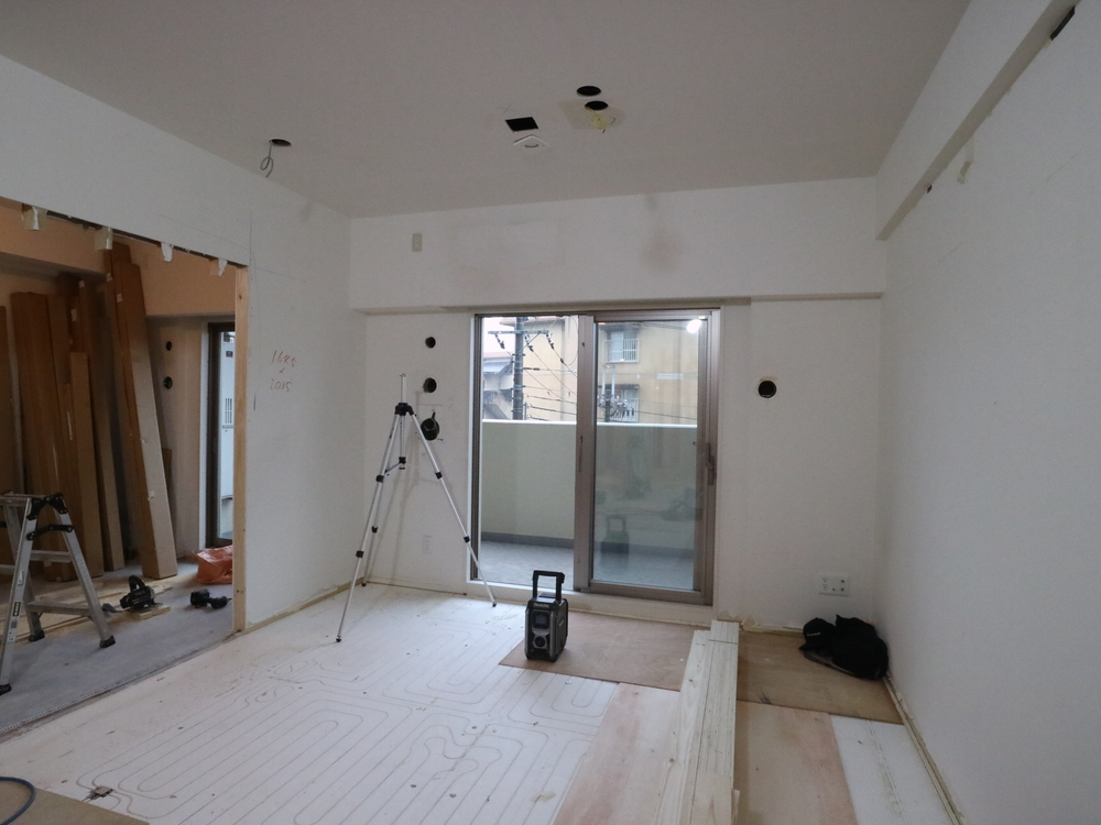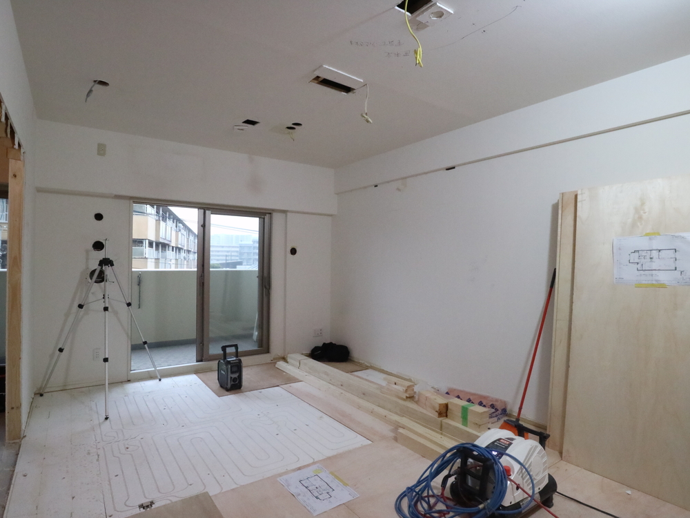 リビングの施工中