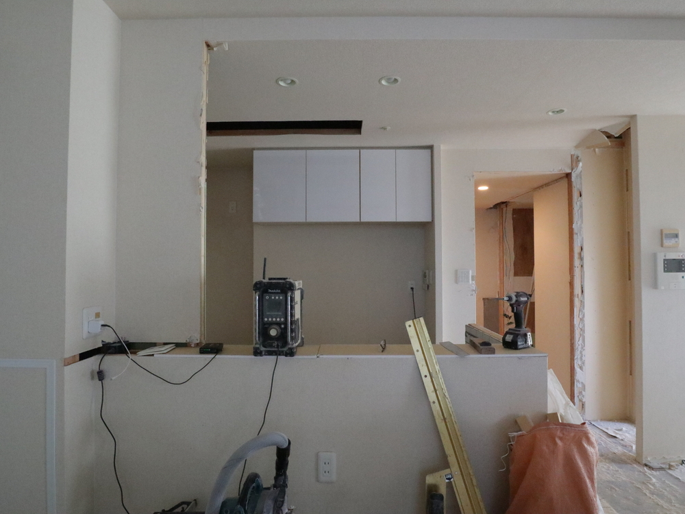 キッチンスペースの施工中