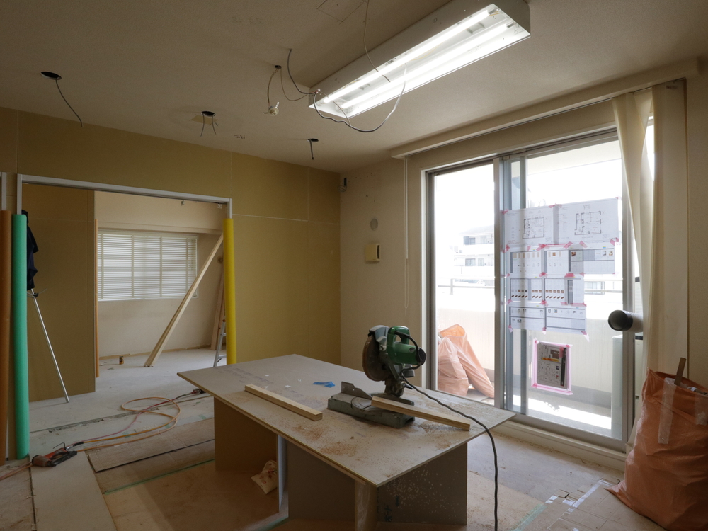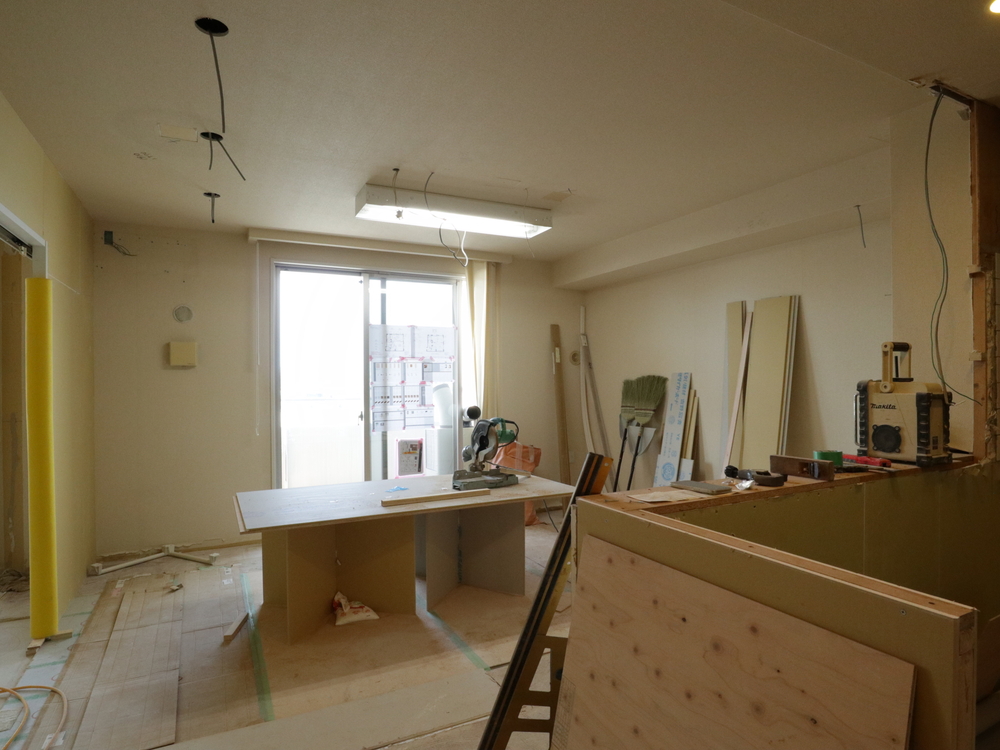リビングの施工中
