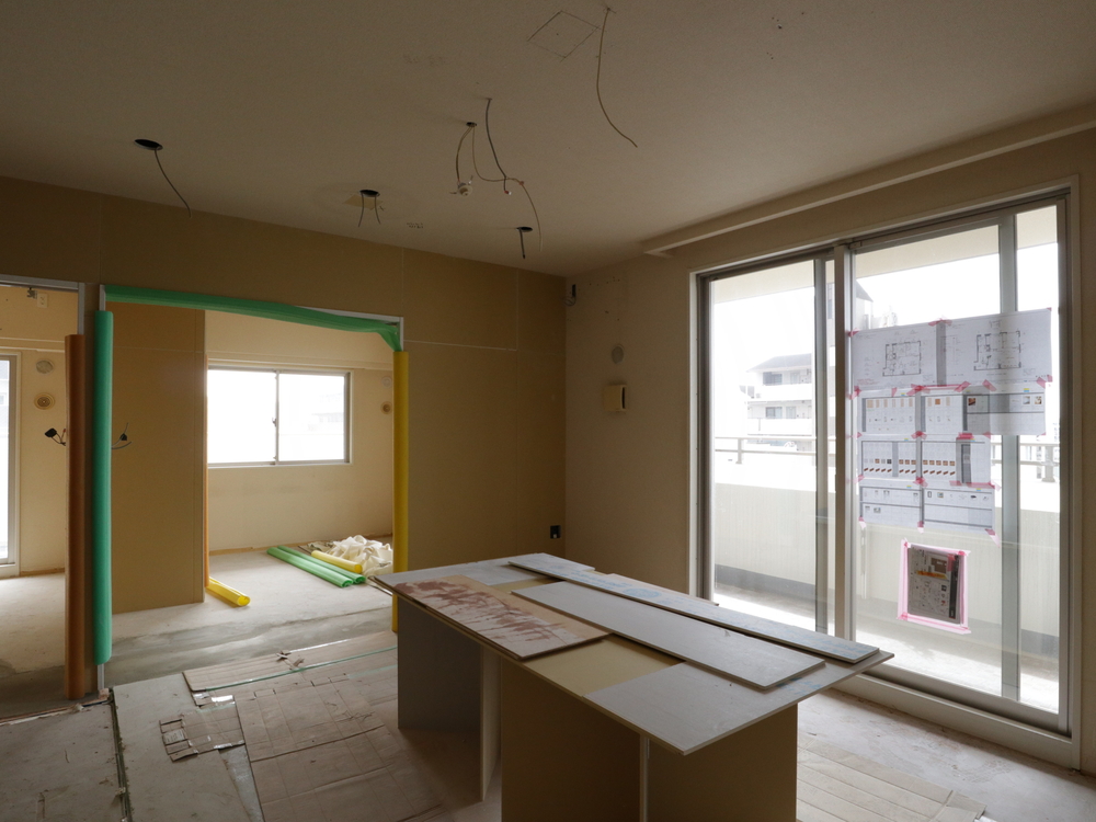 リビングの施工中