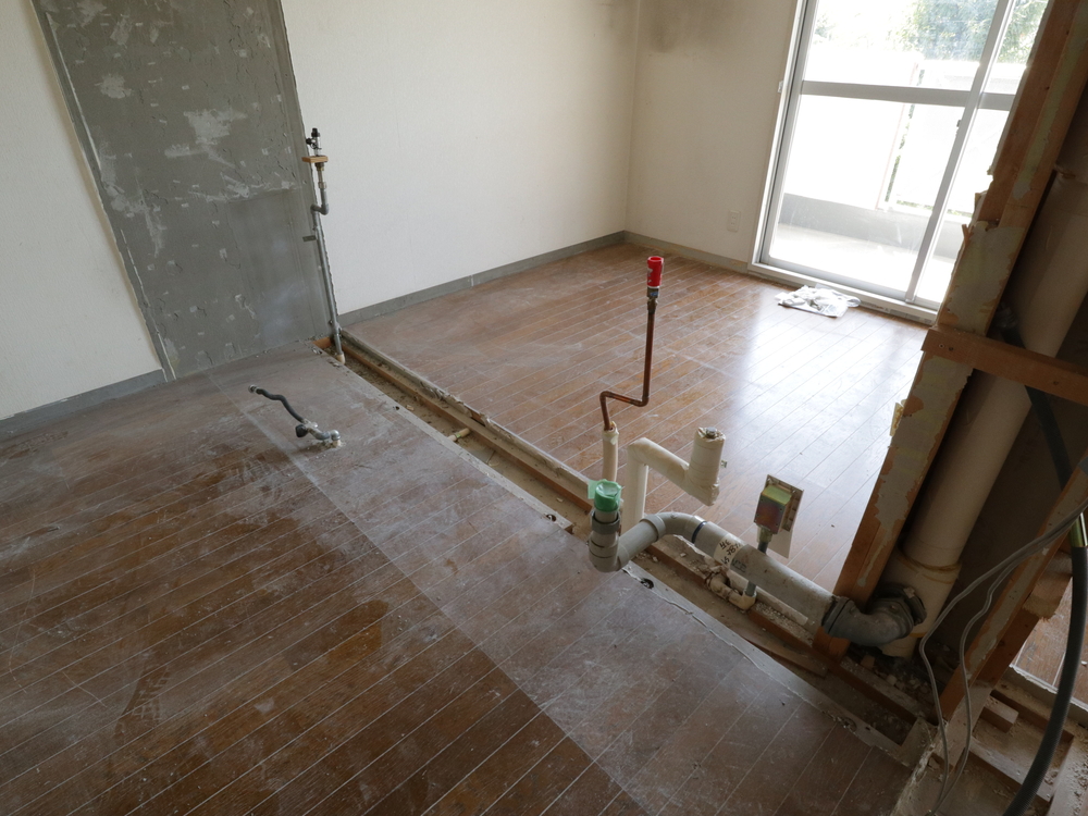 キッチンスペースの施工中