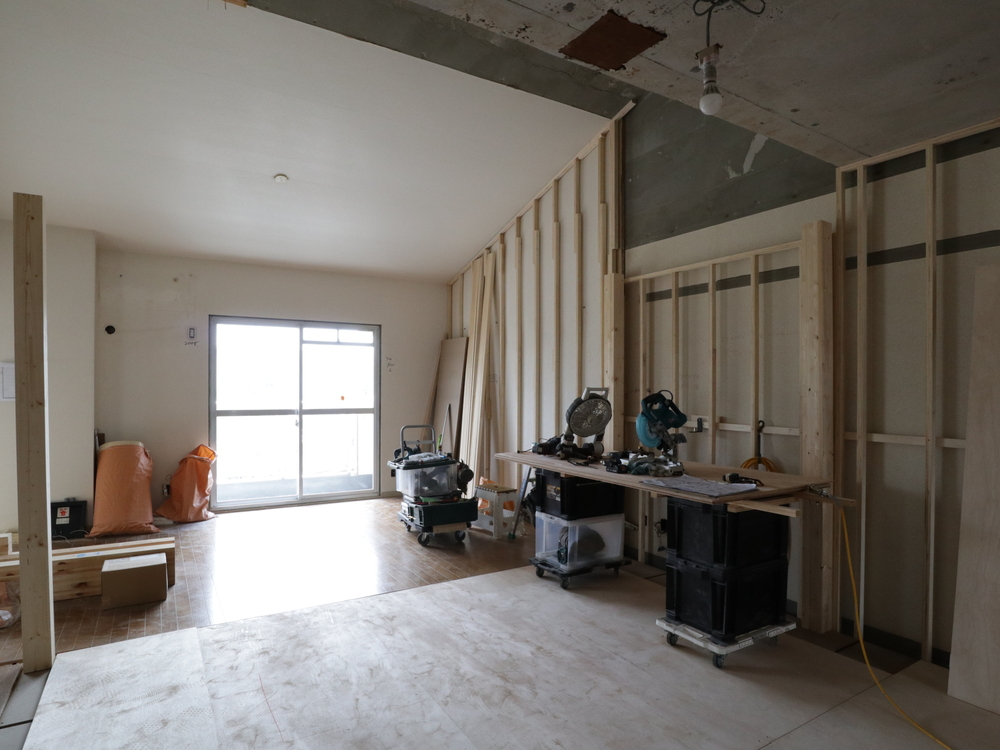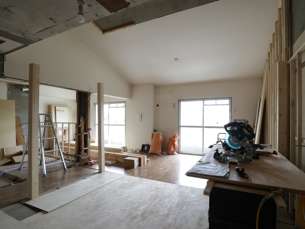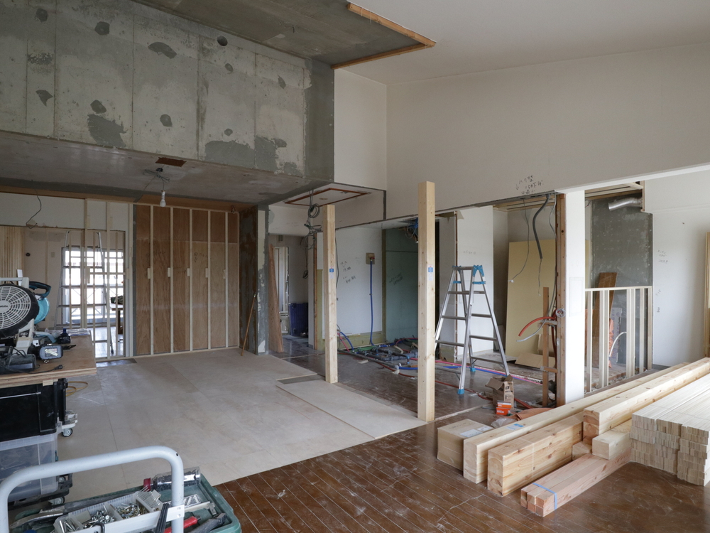 リビングの施工中