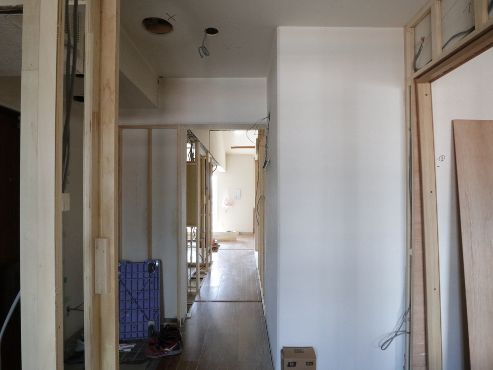 廊下の施工中