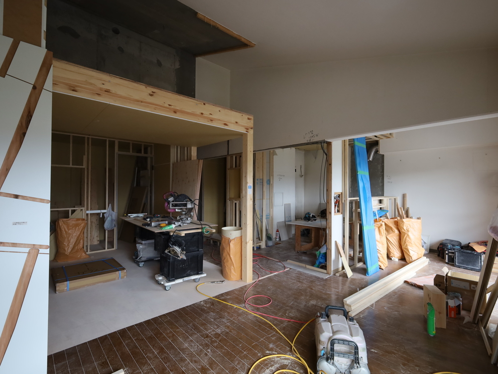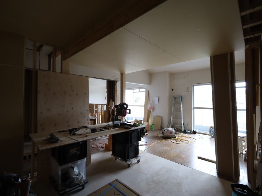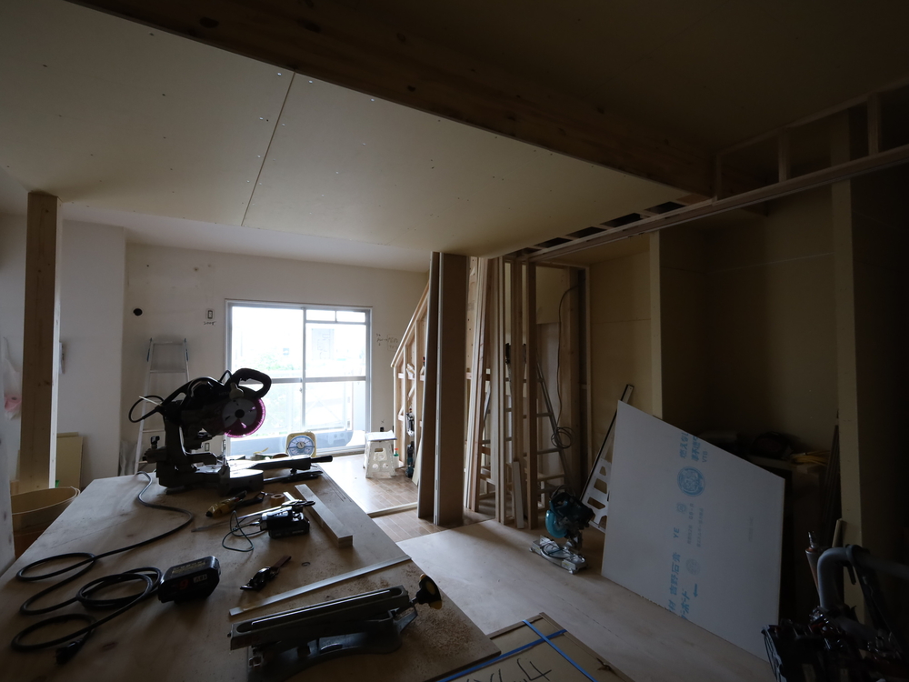 リビングの施工中