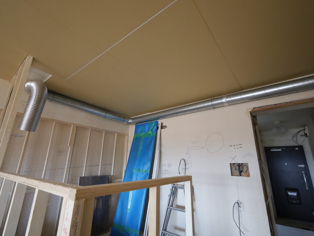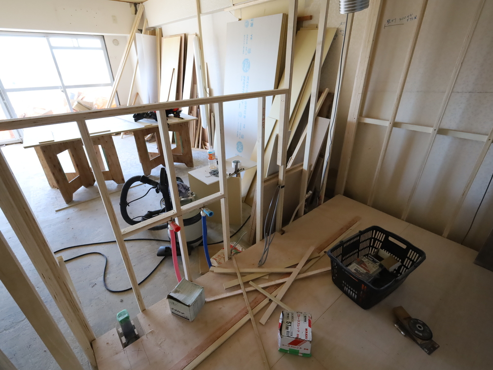 キッチンスペースの施工中