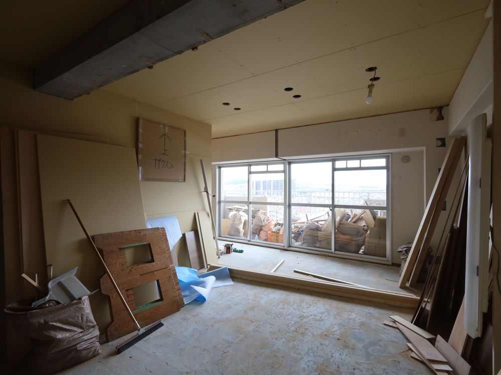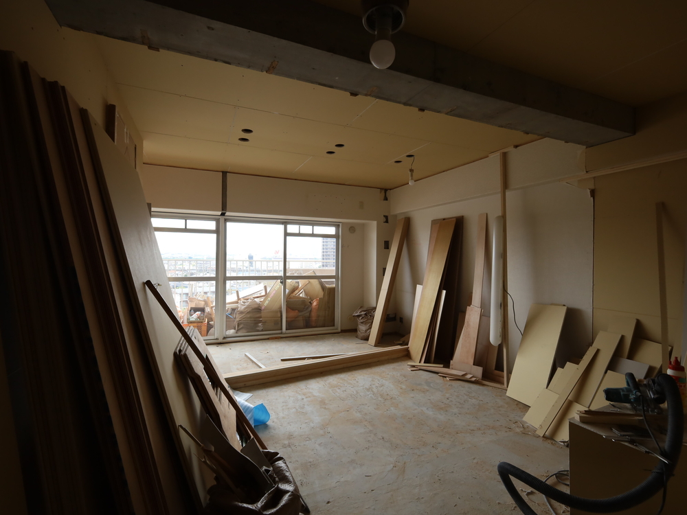リビングの施工中