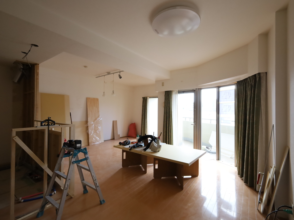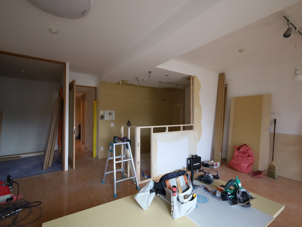 リビングの施工中