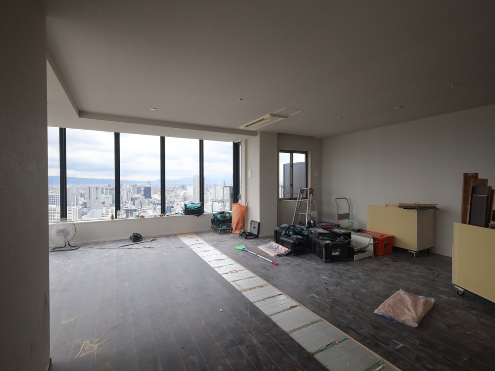 リビングの施工中