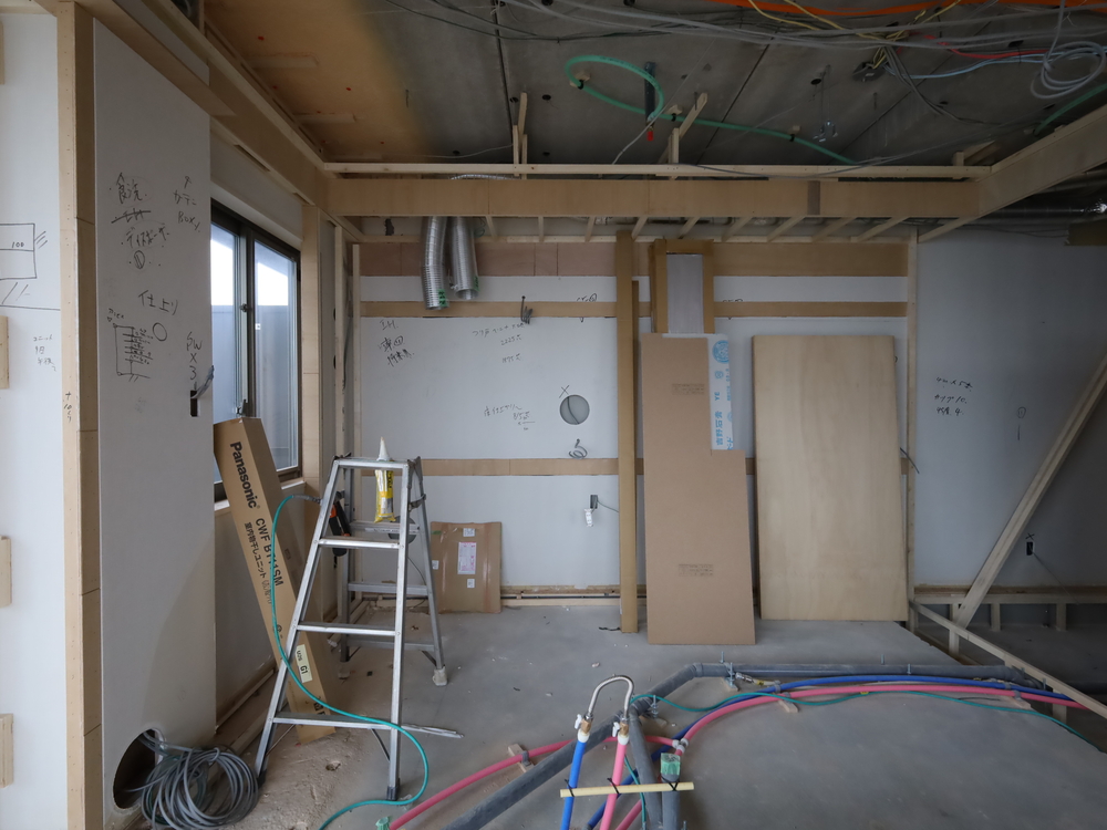 キッチンスペースの施工中