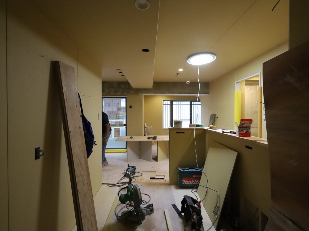 キッチンスペースの施工中