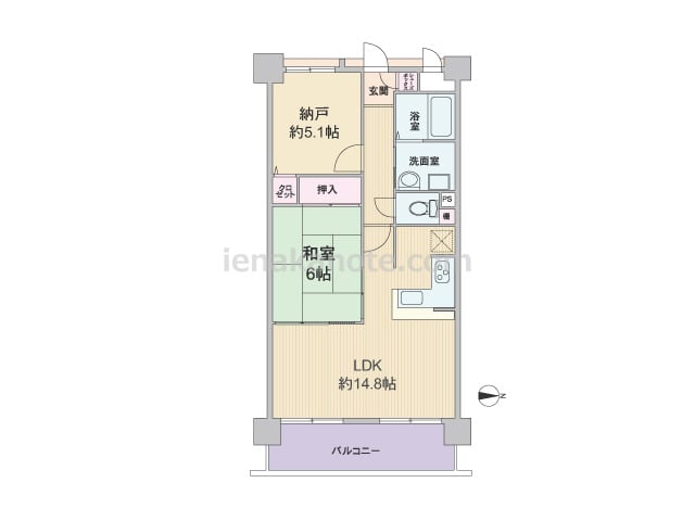 last update : 2016年 1月 16日専有面積61.60平米の1SLDK。キッチンは壁付けのオープンタイプ。LDKと和室が続き間で、約21帖の一つの空間としても使用可能。納戸がありますが、洋室として使った場合は、物入が少なく、収納の工夫が必要です。