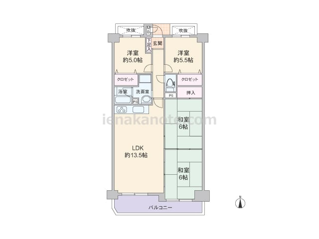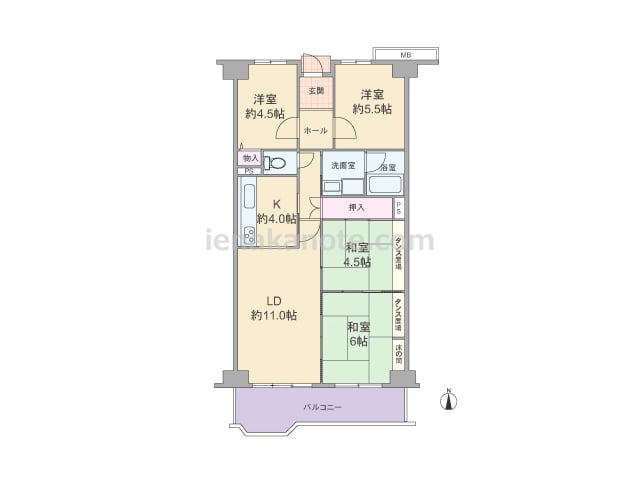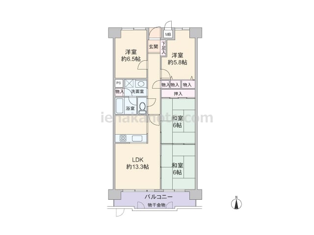 専有面積79.68平米の4LDK。キッチンはリビング・ダイニングから独立した配置で、生活感がリビング・ダイニングに伝わりにくいのが特徴です。和室2間とリビング・ダイニングは続き間になっており、襖を開放すればレイアウト変更が出来ます。和室に...