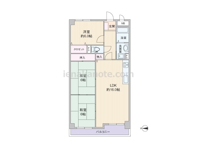 専有面積74.79平米の3LDK。どの部屋も6帖のゆとりがあるプラン。LDKと和室二部屋が続き間になっており、襖を開放すれば空間を広々と使う事が出来ます。キッチンは壁付け・オープンタイプ。バルコニーに面する和室には収納スペースが無いため、...