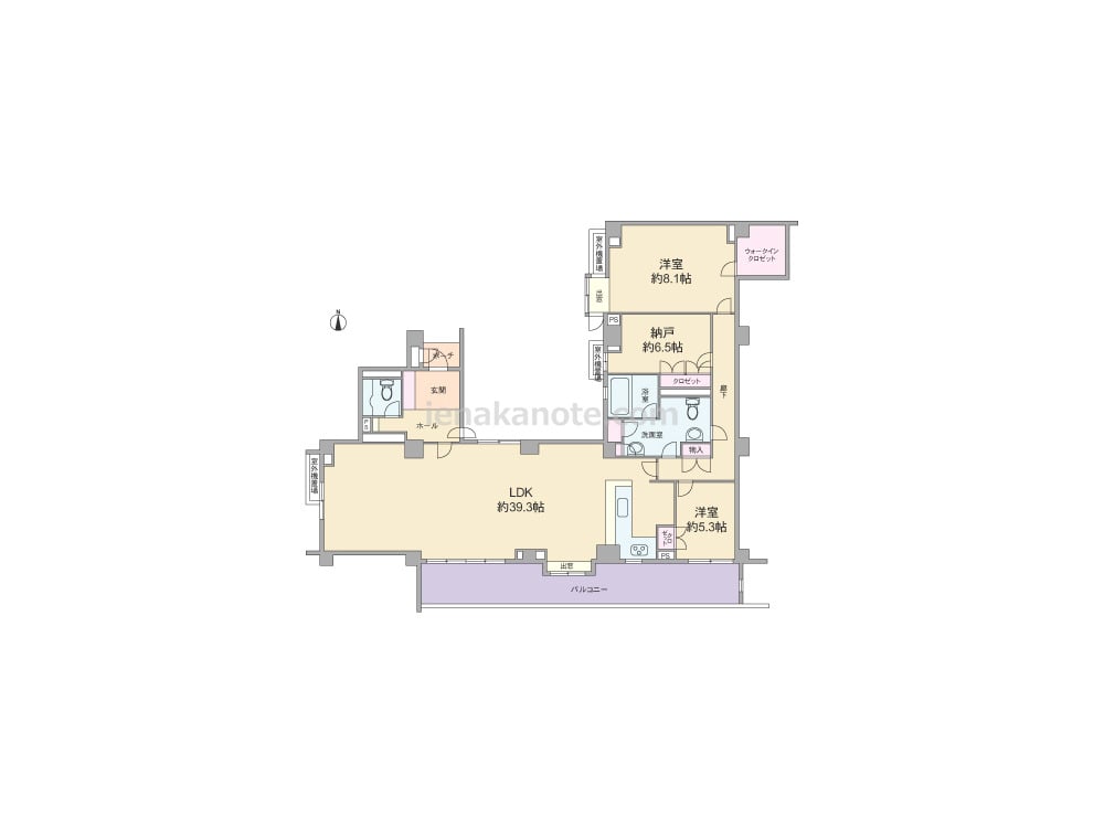 専有面積148.57平米の2SLDK。玄関前にポーチ付き。LDKはゆとりの約39.3帖、主寝室は約8.1帖大。ワイドスパンのプランで、南面4カ所に窓があります。キッチンは使い易いL字のカウンタータイプ。浴室にも窓があり、換気がよく快適。バルコニーは広く、ガーデニングもたっぷり楽しめます。