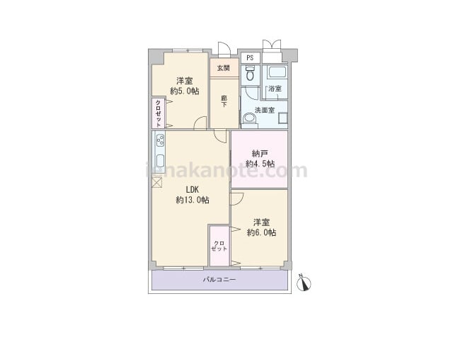 専有面積63.70平米の2SLDK。LDKは約13帖、キッチンはI型の壁付け・オープンタイプです。約4.5帖の納戸は収納としてはもちろん、書斎や趣味の部屋など様々な用途に使えます。どの部屋にも一度LDKを通ってから入る造りのため、自然と家...
