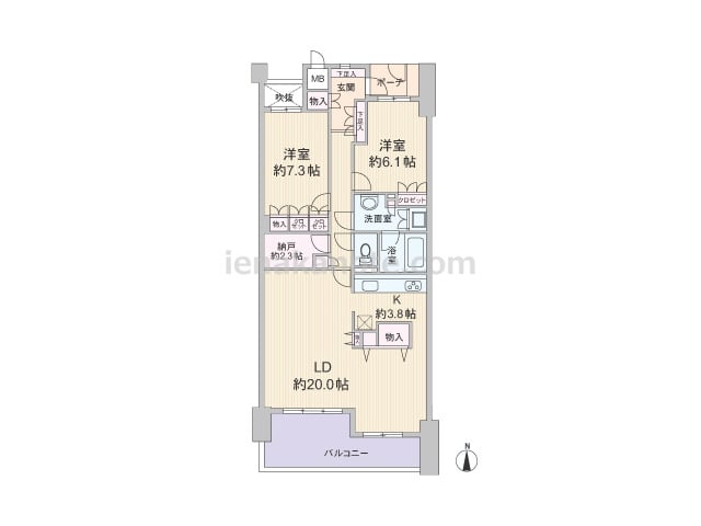 専有面積88.61平米の2SLDK。全室6帖以上のゆとりあるプラン。玄関前に専用ポーチがあり、玄関から室内が見通せない造りでプライバシーを確保。玄関には明り取りの窓があります。LDKは約23.8帖大と広く、LDKに設けられた収納スペースは...