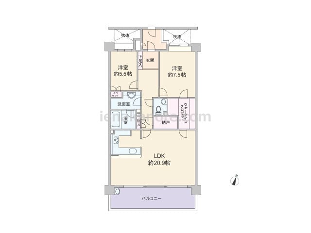専有面積82.08平米の2SLDK。共用廊下と住居の間に吹き抜けと専用ポーチが設けられた、プライバシー性の高いプラン。玄関ホールは広くゆとりが感じられる広い空間で、LDKは約20.9帖大と開放的。キッチンはコの字型のカウンタータイプです。...
