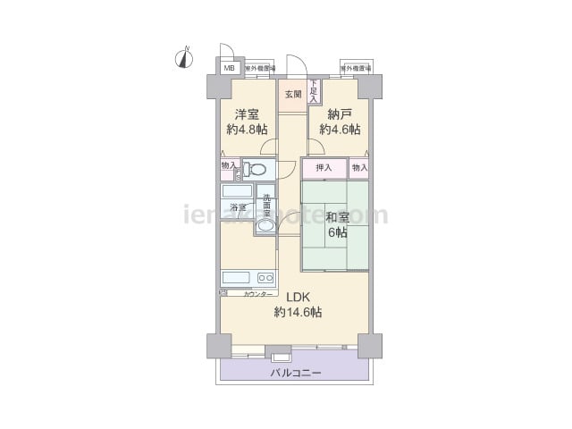 専有面積80.03平米の2SLDK。生活感を感じさせやすいキッチンはリビングダイニングから独立した配置。納戸には季節の物やこまごました生活用品などを収納でき、リビングダイニングはくつろぎの空間を保つ事が出来ます。洋室約3.3帖は扉を開放し...