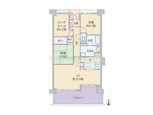 専有面積77.91平米の2SLDK。玄関前にポーチがあり、共用廊下に直接面する居室の無いプライバシー重視のプラン。バルコニーは上階・下階に合計4ヶ所あり、また、ガーデニングスペースやくつろぎスペースにできそうな広々としたルーフバルコニーも...