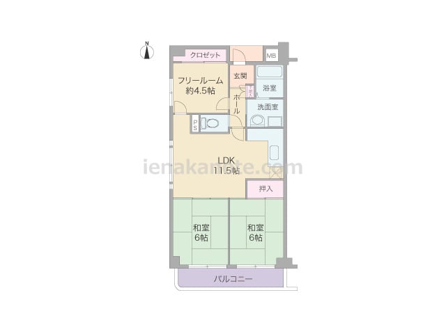 専有面積64.25平米の2SLDK。主寝室約7.3帖は3面採光。キッチンは独立タイプ。LDには和室4.7帖が隣接しているため、襖を開放すれば約14.3帖の空間としても利用可能。各室に収納スペース付き。浴室にも窓があり、湿気がこもらず快適で...