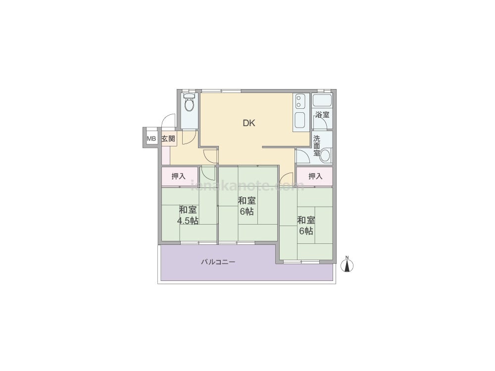 間取り:3DK 広さ:57.17平米 (間取りID: 14394)
