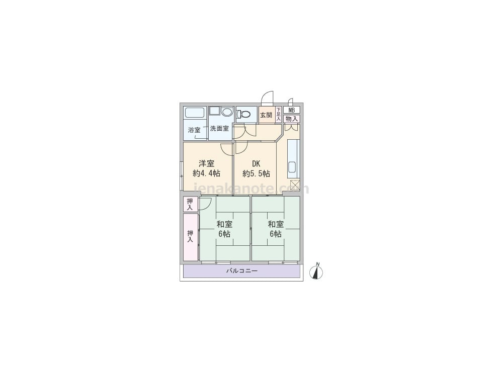 専有面積51.03平米の3DK。玄関を入るとすぐにダイニングがあり、各室にはダイニングを通ってアクセスするため家族のコミュニケーションの機会が増える配置です。キッチンのコンロ横の物入れは調味料などを収納するのに便利。収納スペースが西側の和室にしか無いため、収納家具を置くなど少し工夫が必要です。