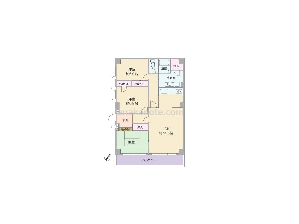 専有面積83.95平米の3LDK。LDKは約14.5帖。和室の襖を開放すれば、より広くリビングダイニングを使う事が出来ます。生活感を感じさせやすいキッチンは半独立型で、リビングダイニングはくつろぎの空間を演出することが可能。各居室に収納スペースが設けられ、洗面室にも収納力のある物入付き。バルコニーは約11.1平米の広さがあります。