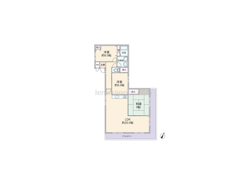 専有面積79.60平米の3LDK。全室6帖以上のゆとりあるプラン。玄関から居室が見通せない、プライバシーに配慮された造り。2面採光のLDKは約20.0帖大と広く、和室8帖の襖を開放すれば約28.0帖大の空間としても利用出来ます。各居室に収納スペース付き。浴室の窓は換気がしやすく快適。バルコニーは約17.5平米の広さがあり、ガーデニングを楽しむのによさそうです。