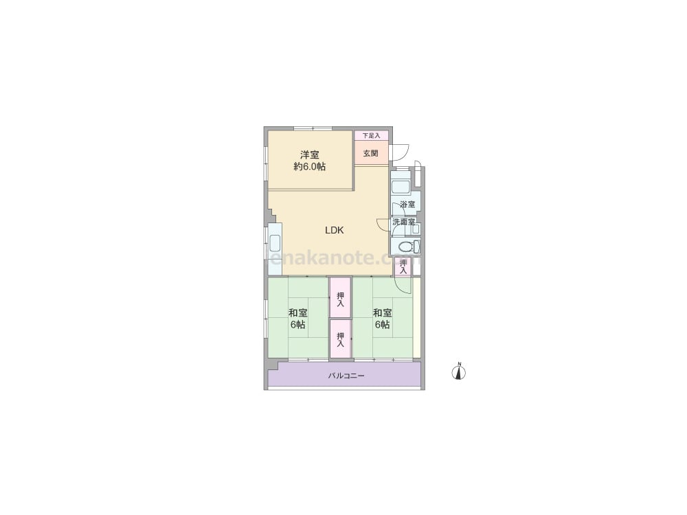 専有面積64.92平米の3LDK。室内廊下の面積が少ない・居室の広さを優先したセンターリビングのプラン。全部屋6帖以上の広さ。全部屋に窓があるため明るく、通風にもすぐれています。洋室約6.0帖には収納スペースが無く、収納家具を設けるなど少し工夫が必要です。トイレは洗面室を通って出入りする造りで、トイレ・洗面室使用時の動線が重なっています。