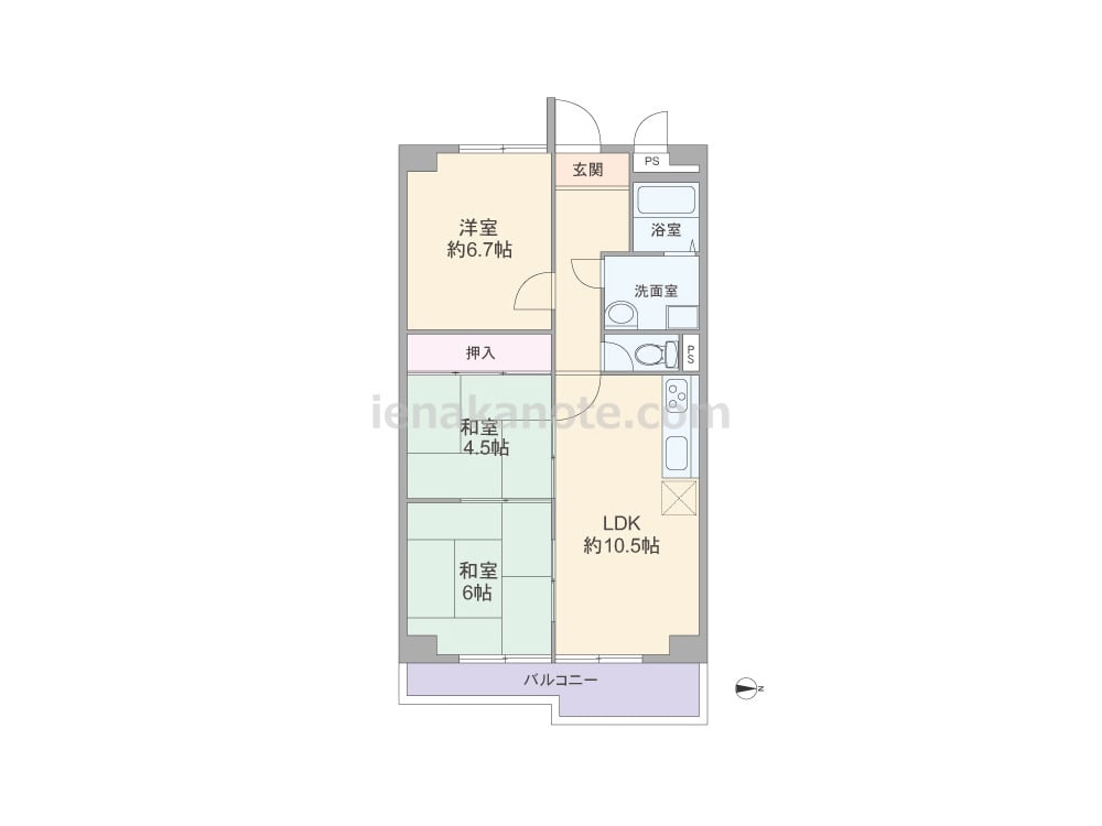 間取り:3LDK 広さ:66.36平米 (間取りID: 3252)