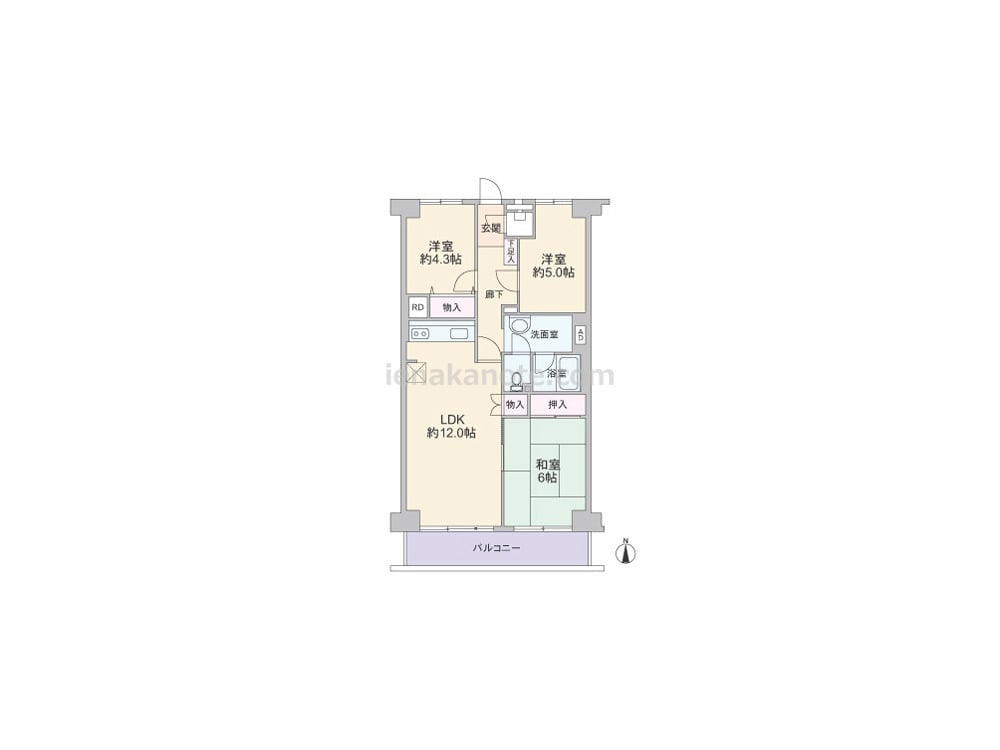 間取り:3LDK 広さ:69.30平米 (間取りID: 5117)