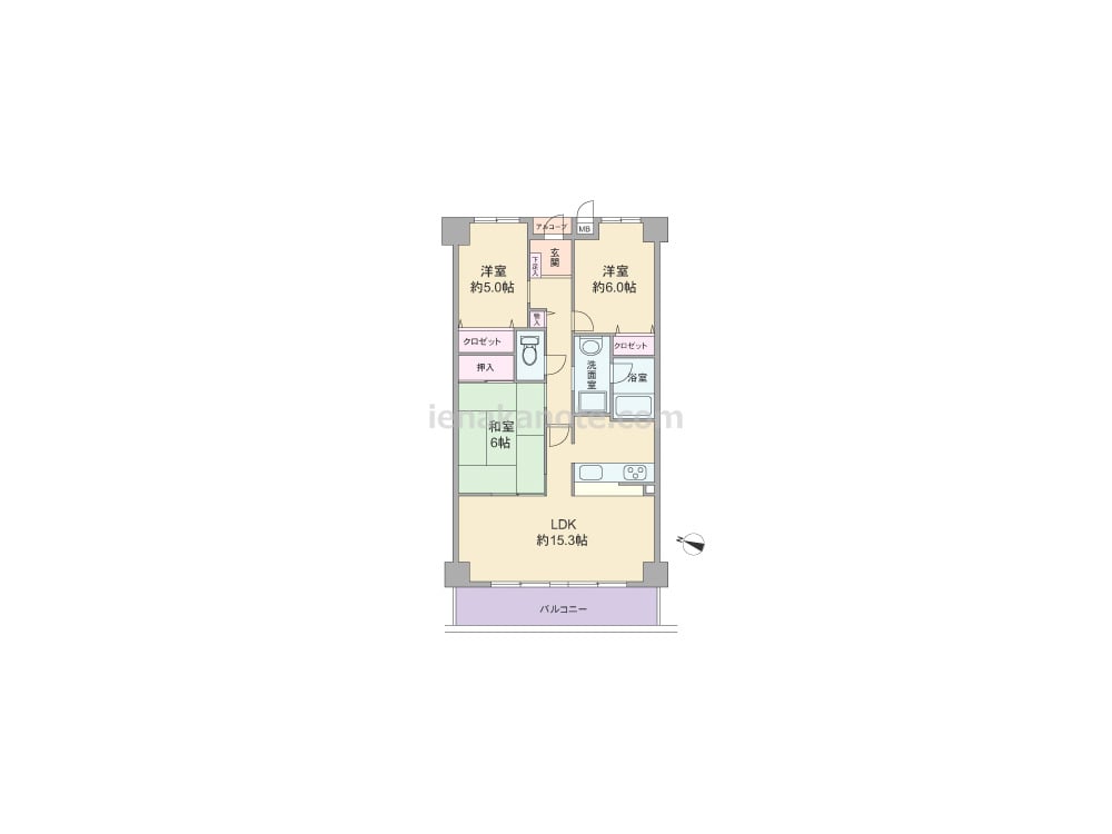 専有面積69.28平米の3LDK。キッチンはカウンタータイプ。家事をしながら家族の様子を窺うことができます。LDKには和室6帖が隣接しており、襖を開放すれば、約21.3帖のスペースとしても利用可能。各室に収納があります。