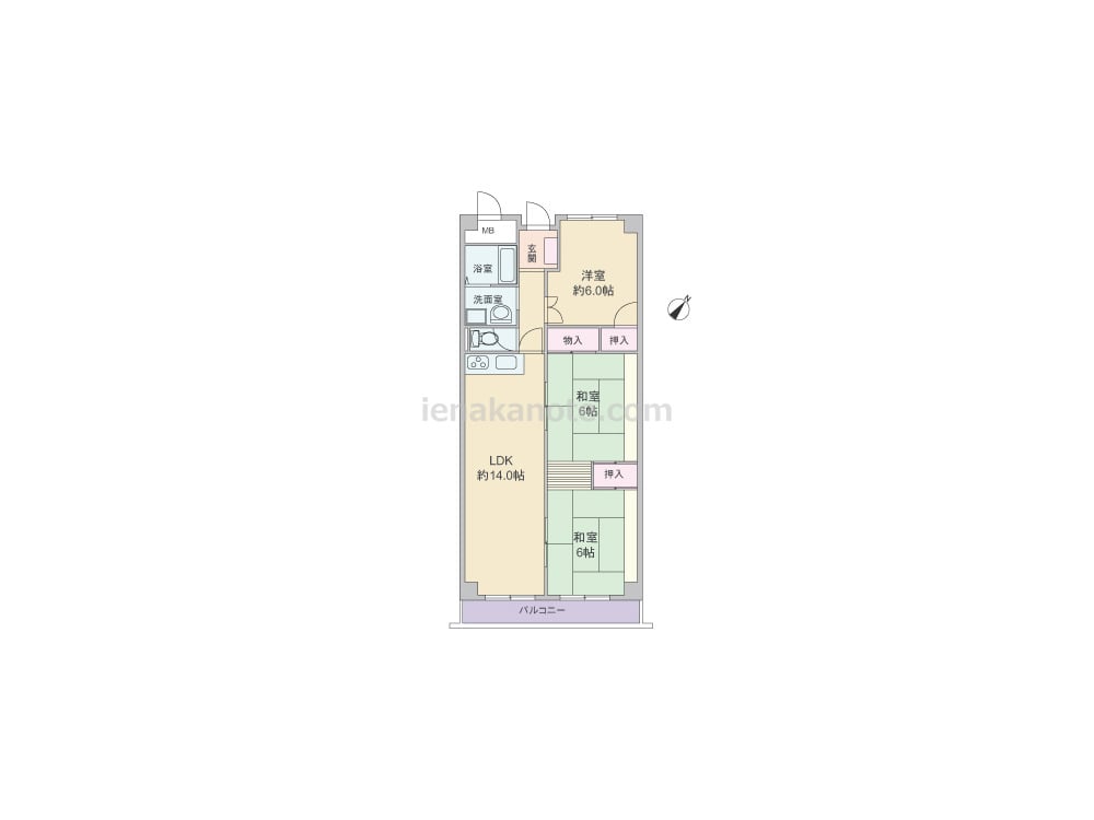 専有面積75.50平米の3LDK。廊下の短い、専有面積を有効に利用したプラン。全部屋6帖以上の広さがあります。またLDKと2部屋の和室が続き間で、生活シーンに合わせてフレキシブルに使用出来ます。