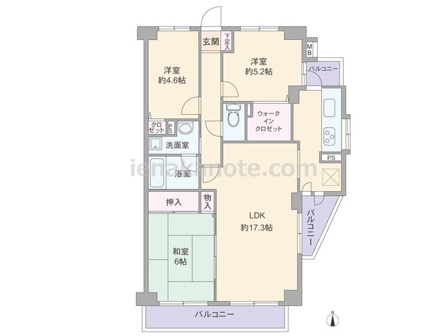 専有面積89.53平米の3SLDK。全室6帖以上のゆとりがある、センターインのプラン。玄関前にはプライバシーに配慮されたアルコーブがあります。LDKは約17.3帖、キッチンは作業中も家族と会話を楽しめる対面・カウンター式です。和室は室内廊...