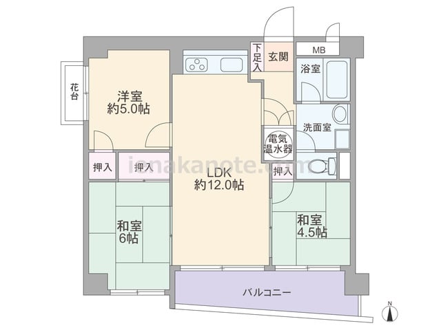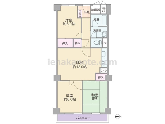 専有面積63.21平米の3LDK。全室に窓がある南向き・ワイドスパンのプラン。玄関先から室内を見通せない造りでプライバシーを確保。どの部屋もLDK約12.0帖を通って出入りするため、家族のコミュニケーションの機会が増えます。また、LDKと...