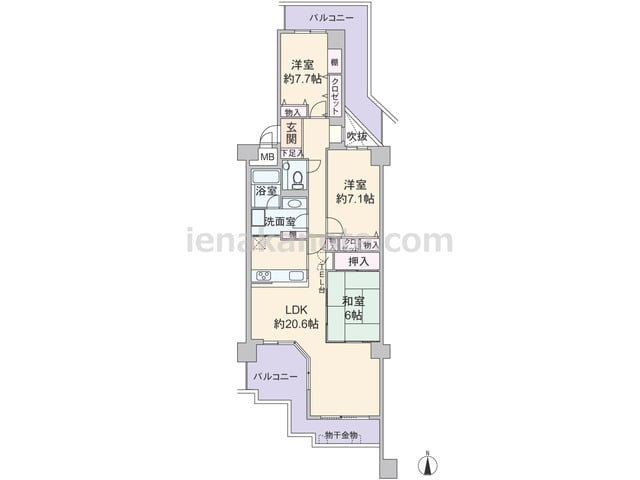 専有面積92.22平米の3LDK。共用廊下に居室の窓が面しておらず、玄関先から室内を直接見通せない、プライバシー性の高いプラン。どの部屋も6帖以上あり、LDKは広々約20.6帖大。和室の襖を開放すれば、空間をより広々と使う事が出来ます。対...
