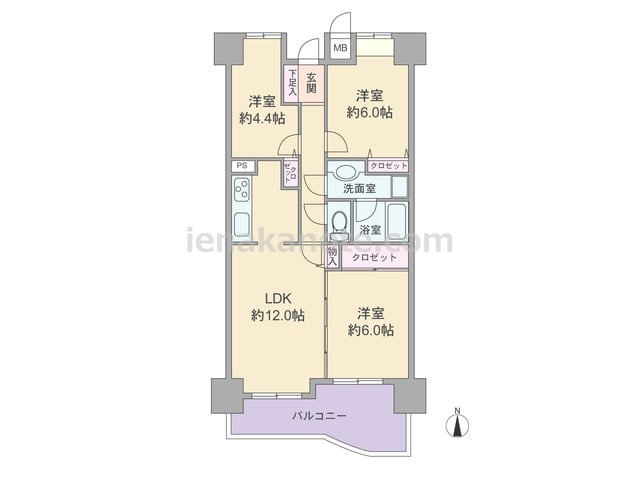 専有面積63.87平米の3LDK。LDKは約12.0帖、隣接する洋室約6.0帖の引き戸を開放すれば、LDK約18.0帖大にする事も出来ます。生活感の出やすいキッチンは独立型のため、リビング・ダイニングはくつろぎの空間を演出可能。各居室と室...