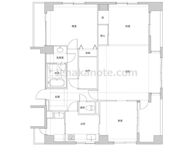 専有面積75.80平米の3LDK。全室6帖以上の広さがあります。LDKは約14.8帖、キッチンはリビング・ダイニングを見ながら作業が出来る対面式。キッチンから洗面室・バルコニーへアクセスでき、家事動線の良い造りです。和室の引き戸を開放すれ...