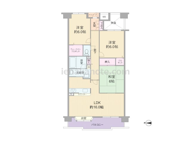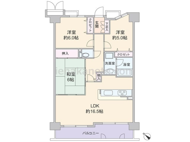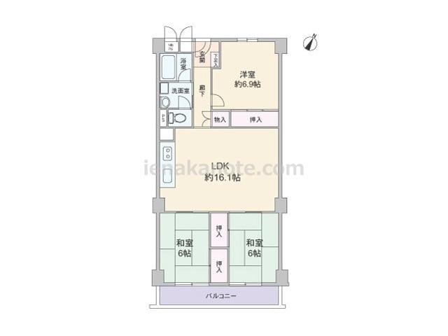 専有面積80.00平米の3LDK。全部屋6帖以上の広さがあるセンターリビングのプラン。LDKはゆとりの約16.1帖、主寝室は約6.9帖大。キッチンはLDKを広く使えるI型、壁付けのオープンタイプ。LDKと和室2部屋が続き間で、繋げて使うこ...