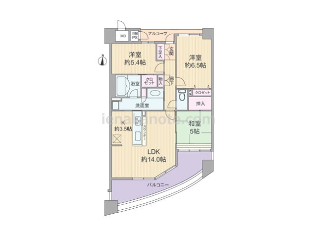 専有面積70.65平米の3LDK。LDKは15.4帖、横長リビングで明るく開放的で、和室とリビングが続き間になっているため、襖を開ければ21.4帖大の大空間として使えます。キッチンはカウンタータイプで、家事効率の良い2WAY動線。各室に収...