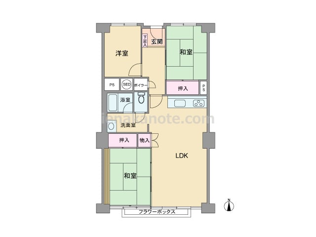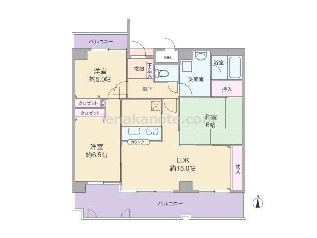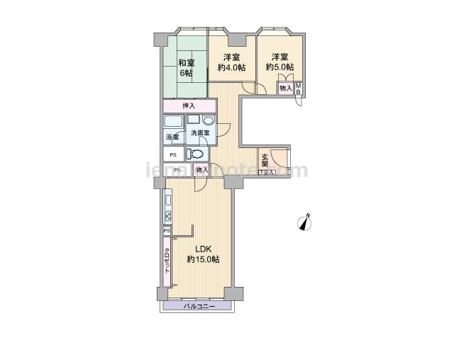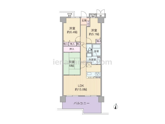専有面積79.16平米の3LDK。居室の窓が共用廊下に直接面していない、センターインのプラン。LDKは約15.0帖大とゆとりがあり、日用品などを収納するのに便利なクロゼットもあります。洋室約4.0帖には収納スペースが無いため、場合によって...