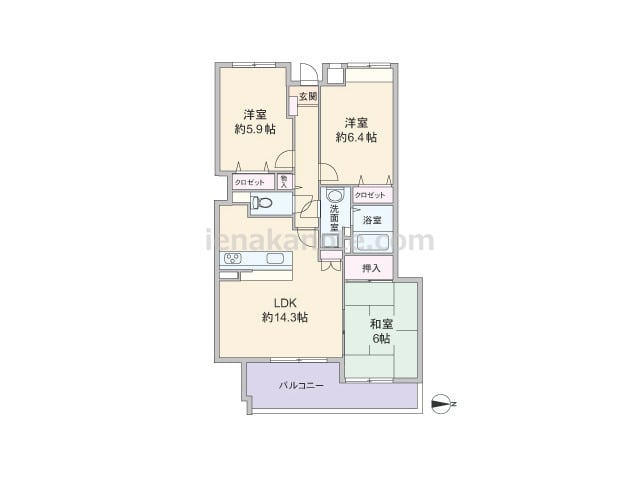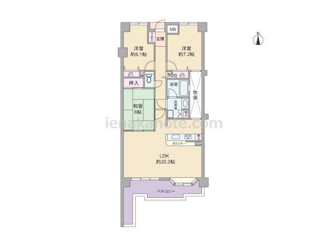 専有面積70.85平米の3LDK。玄関前にアルコーブがあり、玄関から居室が見通せない造りでプライバシーを確保。LDKは約14.1帖、キッチンは独立型のため、リビングダイニングはくつろぎの空間を保つ事が出来ます。LDKを含む3部屋が南向きで...