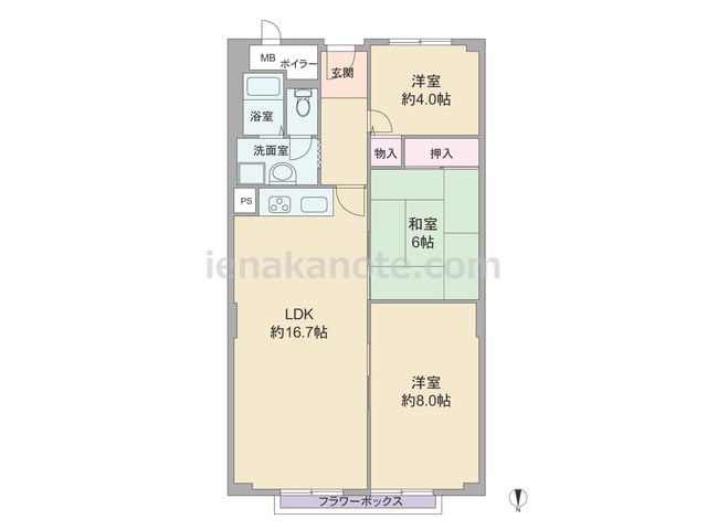 専有面積76.19平米の3LDK。玄関扉は内開き型のため、玄関スペースは限られますが防犯面では安心です。LDKは約16.7帖、キッチンは開放的なI型のウォールタイプ。洋室約8.0帖にはクロゼットが無いため、家具の配置など工夫が必要です。そ...