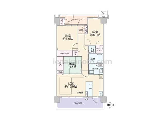 専有面積72.92平米の3LDK。共用廊下に直接面する居室の窓が無い、プライバシーに配慮されたプラン。LDKはゆとりの約15.0帖大。和室6帖の襖を開放すれば、LDKをより広く使う事が出来ます。カウンタータイプのキッチンは家事をしながら家...
